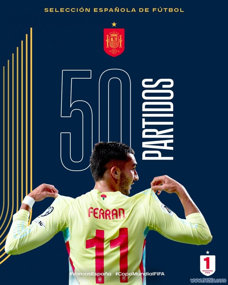 西班牙足协官方晒出了费兰-托雷斯50场比赛的海报,并配文写说念:“为国度队出战50场,道贺费兰-托雷斯!”