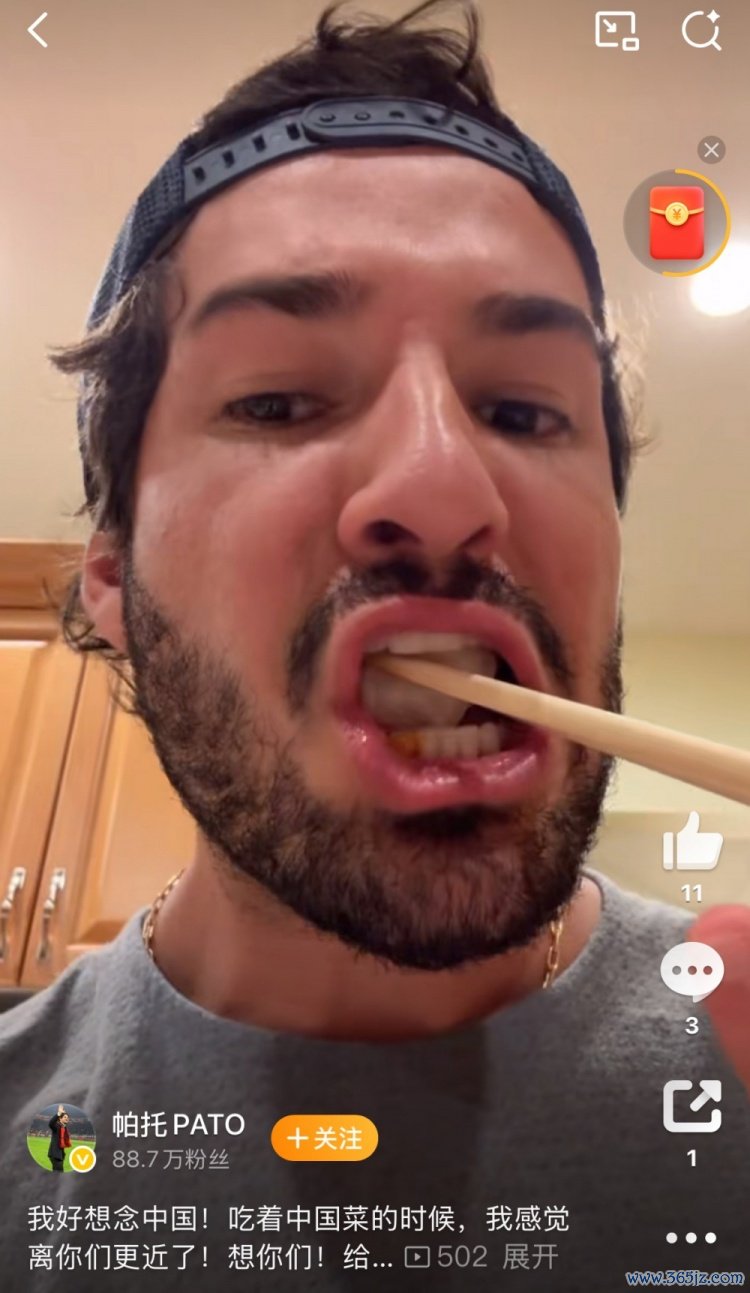 帕托为视频配文写说念:“我好思念中国!吃着中国菜的技艺,我嗅觉离你们更近了!思你们!给你们每个东说念主一个深深的拥抱!”