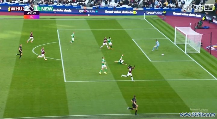 上半场补时阶段,万比萨卡边路传中,博特曼铲球突围变铲射,径直将球铲进自家大门,纽卡1-2过期西汉姆。
