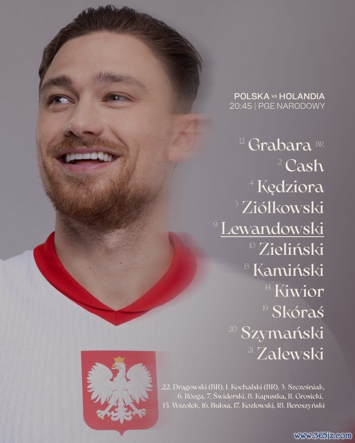 12-格拉巴拉、2-卡什、4-科济奥拉、5-皆奥尔科夫斯基、9-莱万、10-泽林斯基、13-卡明斯基、14-基维奥尔、19-斯科拉斯、20-希曼斯基、21-扎莱夫斯基
