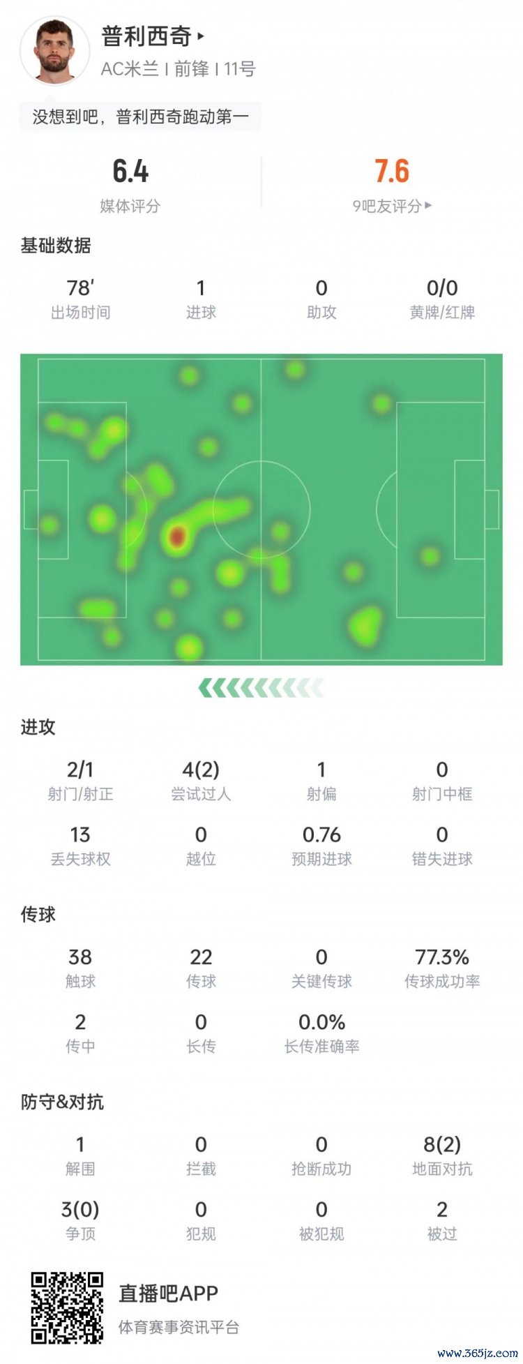 11月24日讯 意甲第12轮比赛,普利西奇破门,第78分钟被换下,米兰1-0逾越国米。
