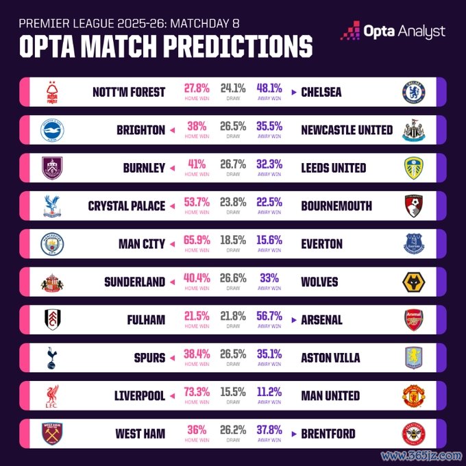 10月17日讯 英超第8轮比赛本周末开战,Opta的超等盘算机展望了通盘比赛的球队胜率。其中最焦点的对决,利物浦vs曼联呈现一边倒的样貌,利物浦胜率73.3%,曼联胜率仅11.2%。