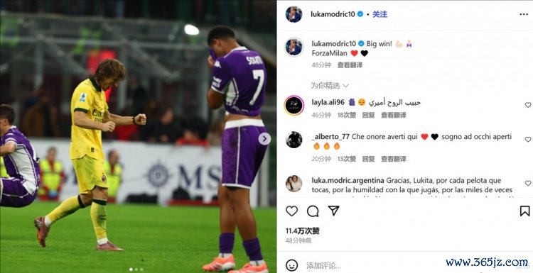 莫德里奇晒出了我方的赛场照,配文写谈:“伟大的到手!Forza Milan。”