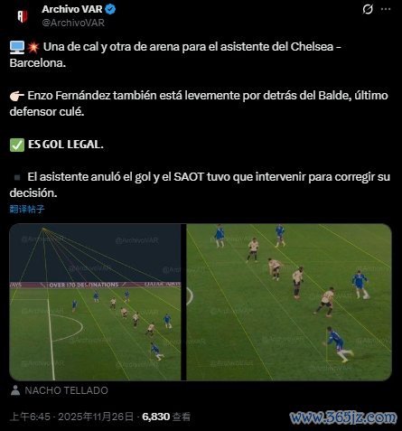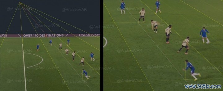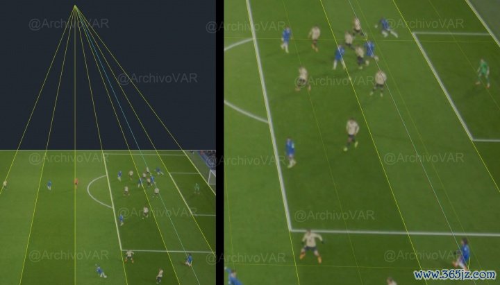 11月26日讯 欧冠联赛阶段第5轮,切尔西3-0巴萨,赛后专注于分析各种判罚的机构Archivo VAR发文晒出对本场比赛部分判罚(主要为是否越位场景)的划线和分析。