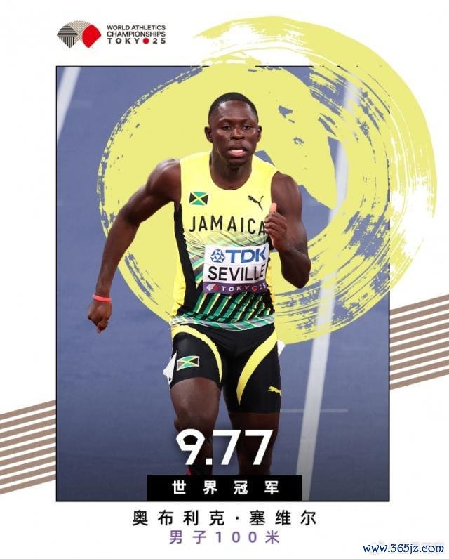 09月14日讯 2025年东京田径世锦赛须眉百米飞东谈主大战,塞维而后程逆转,9秒77刷新PB首夺世锦赛冠军,汤普森9秒82银牌,卫冕冠军莱尔斯9秒89铜牌。