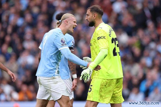 当多纳鲁马在曼市德比完成那记让通盘质疑者闭嘴的扑救时,哈兰德冲上去与之庆祝。这位体格深广的前卫用一个凶猛的胸部撞击接待了他相同浩大的队友门将。