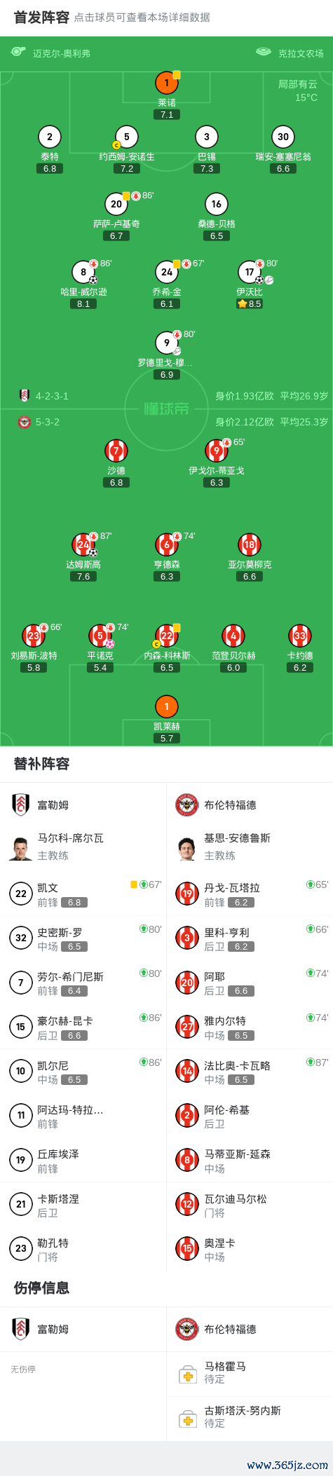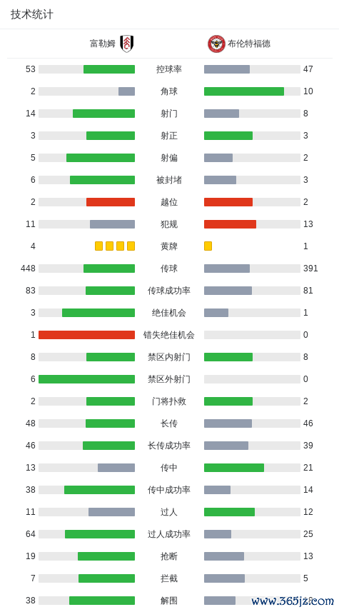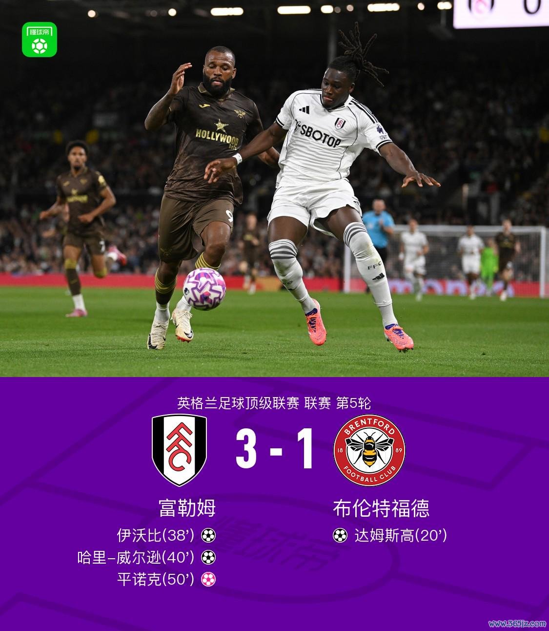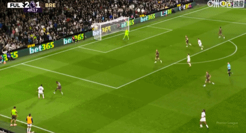 第50分钟,皮诺克头球顶入乌龙球,富勒姆3-1布伦特福德