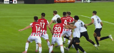 第52分钟,队友传中,里奥哈后点抢点射门踢疵