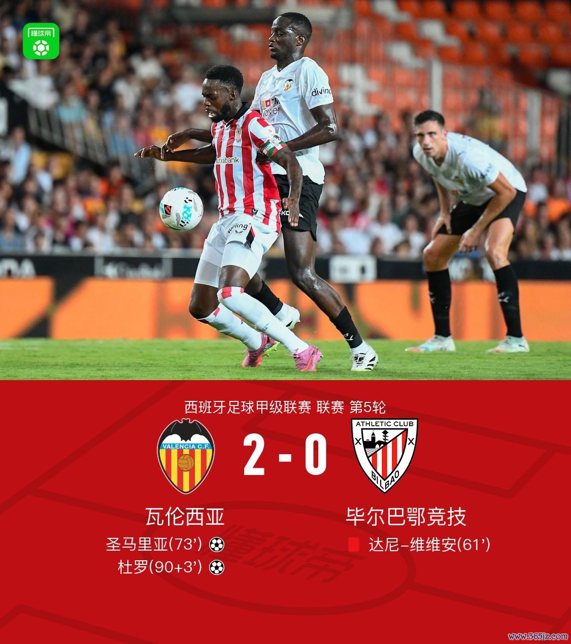 北京时刻9月21日,西班牙足球甲级联赛第5轮,瓦伦西亚镇守主场迎战毕尔巴鄂竞技。比赛中,毕尔巴鄂竞技球员达尼-维维安被红牌罚下。随后,瓦伦西亚把抓东说念主数上风延续施压,哈维-格拉送出助攻,圣马里亚推射破门。摆布比赛禁止,圣马里亚边路突破后传中,杜罗包抄得分锁定胜局。最终,瓦伦西亚以2比0驯顺毕尔巴鄂竞技。