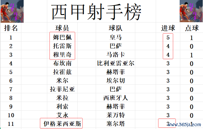 弓手榜方面,姆巴佩5球连接领跑,托雷斯今天梅开二度,穆里奇打入绝平一球,两东谈主4球比肩第2。伊格莱西亚斯今天打入一球后,追上拉菲尼亚,米尔,布坎南,拉霍兹等东谈主,将前十门槛普及到3球。