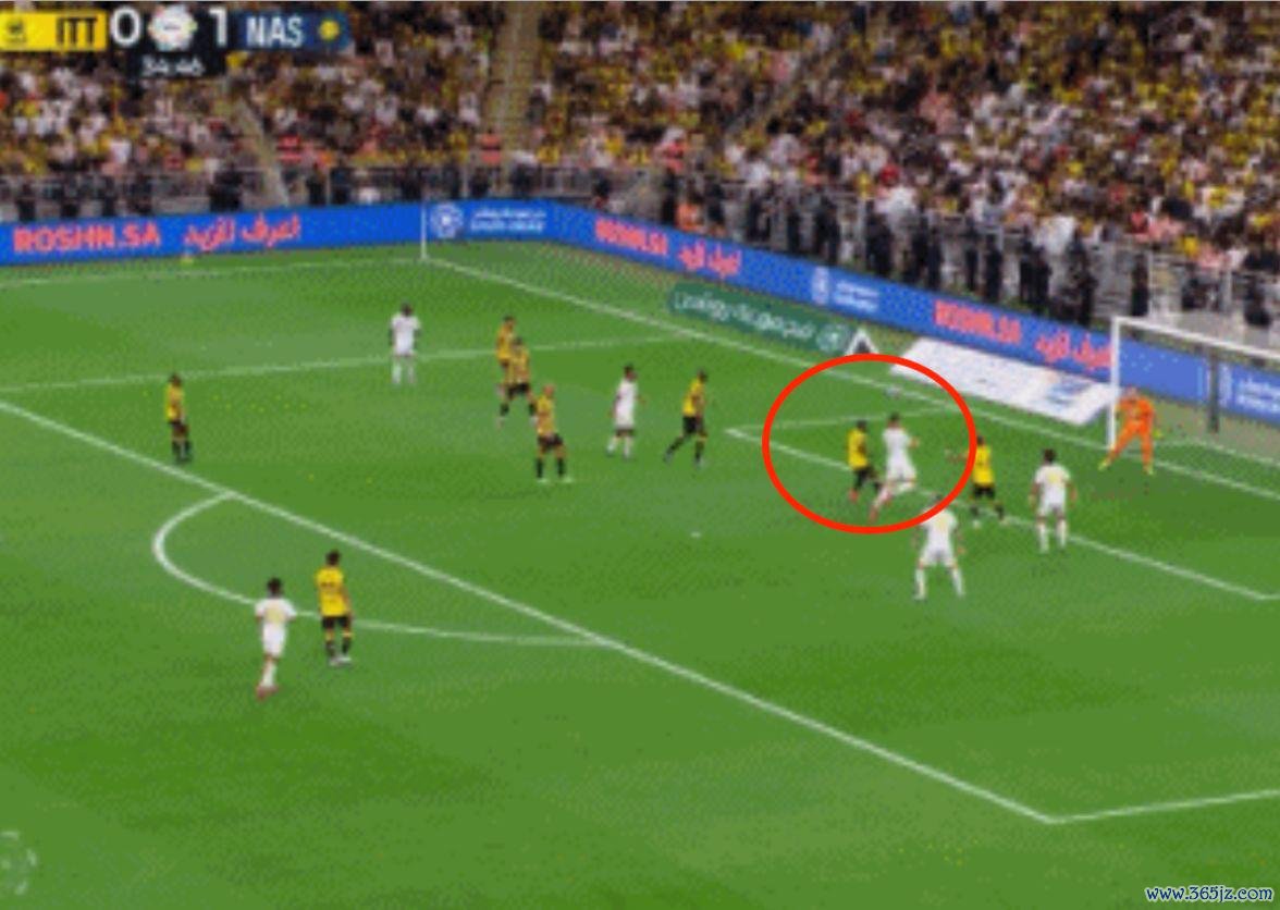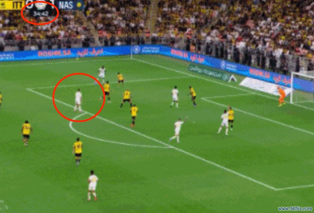 第35分钟,C罗展现了顶级弓手的感觉。利雅得告捷前场推动到对方大禁区外, C罗尝试一脚远射,皮球被后卫封堵。随后,马内将皮球实现住。他看了一下禁区中路的场面,无意传中。