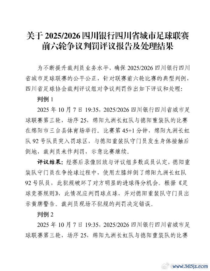 针对前6轮川超联赛的典型判例,四川省足协足协公布了前六轮争议判罚评接头述及处罚遵循,并责令作念出误判的裁判进一步普及水平。