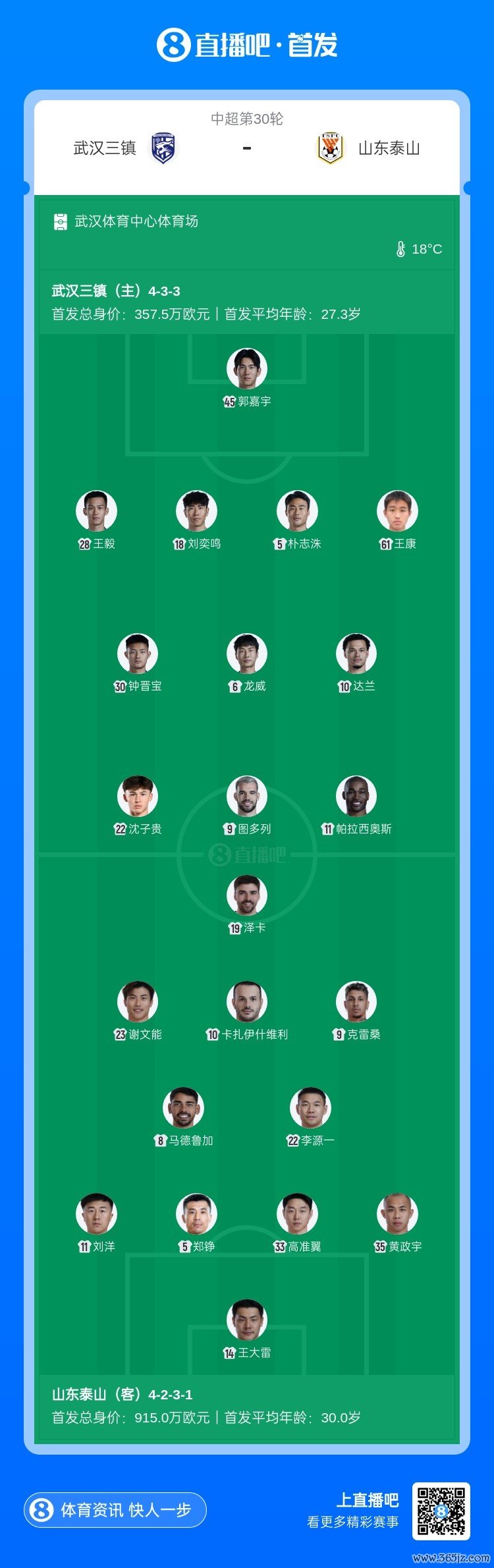 11月22日讯 北京工夫15:30,中超第30轮武汉三镇vs山东泰山,比赛在武汉体育中心说明场打响!上半场,达兰头球补射因越位被判无效;随后图多列、卡扎伊什维利先后进球被吹!卡扎中柱;泽卡抽射破门匡助泰山赢得跳跃!半场补时阶段,刘洋包抄破门!半场措施,山东泰山暂2-0跳跃武汉三镇。