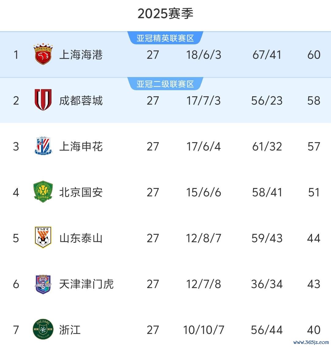 北京时代10月18日,中超联赛第27轮第二个比赛日3场比赛告成进行。最新积分榜方面,前7球队本轮事后积分均达到40分,际遇2连败的北京国安提前3轮绝对无缘争冠,深圳新鹏城拿到要道3分百死一世。