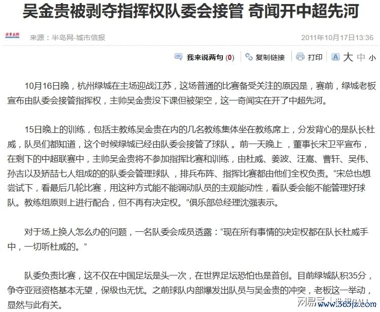 当作非本队球迷的局外人,我试图从浙江队史中寻找一些有异于其他球队、值得一书的故事或者数据,看来要覆没了。联赛季军、杯赛亚军、插足亚冠?太闲居。倒是维基百科中的一篇引述贵寓,引起我的提防。