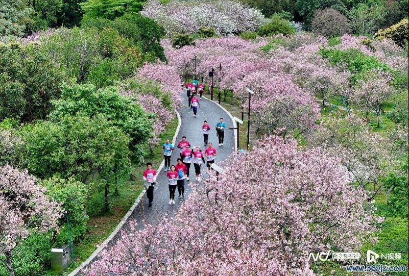 3月30日,“潮玩海珠 热诚全运”2025广州海珠湿地生态跑活力开跑,跑者穿越10亩樱花林。南齐N视频记者高永佳 摄
